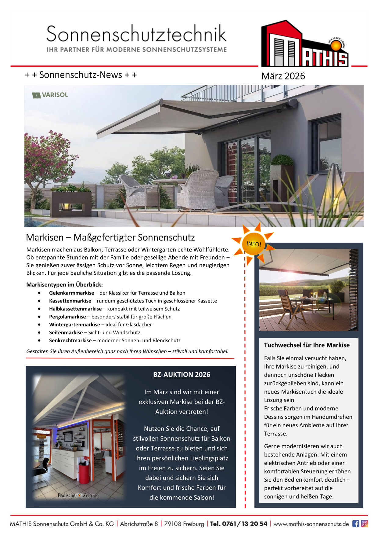 Hier finden Sie jeden Monat unsere aktuellen Aktionen, News und Tipps rund um das Thema Sonnenschutz